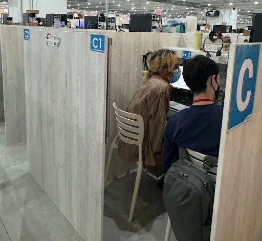 QQ Enlgishは生徒さんが多いため、これくらいの広いブースがあります。