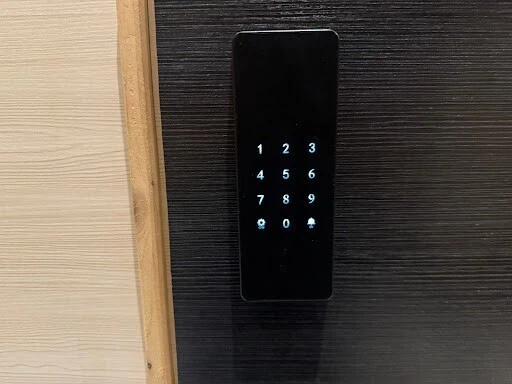設定したナンバーをタッチして解錠するタイプの鍵です(↓写真)
