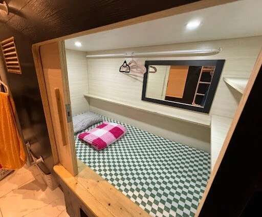 教室と同じ建物にあるカプセルホテルに宿泊します。