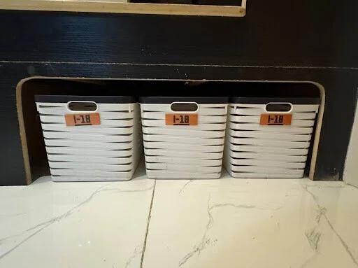 さらにベッド下には3つのかごがあり、かごの奥はスペースになっています。
