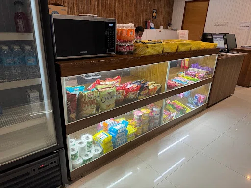 ■受付 軽食やアメニティグッズが売っており、電子レンジもあります。