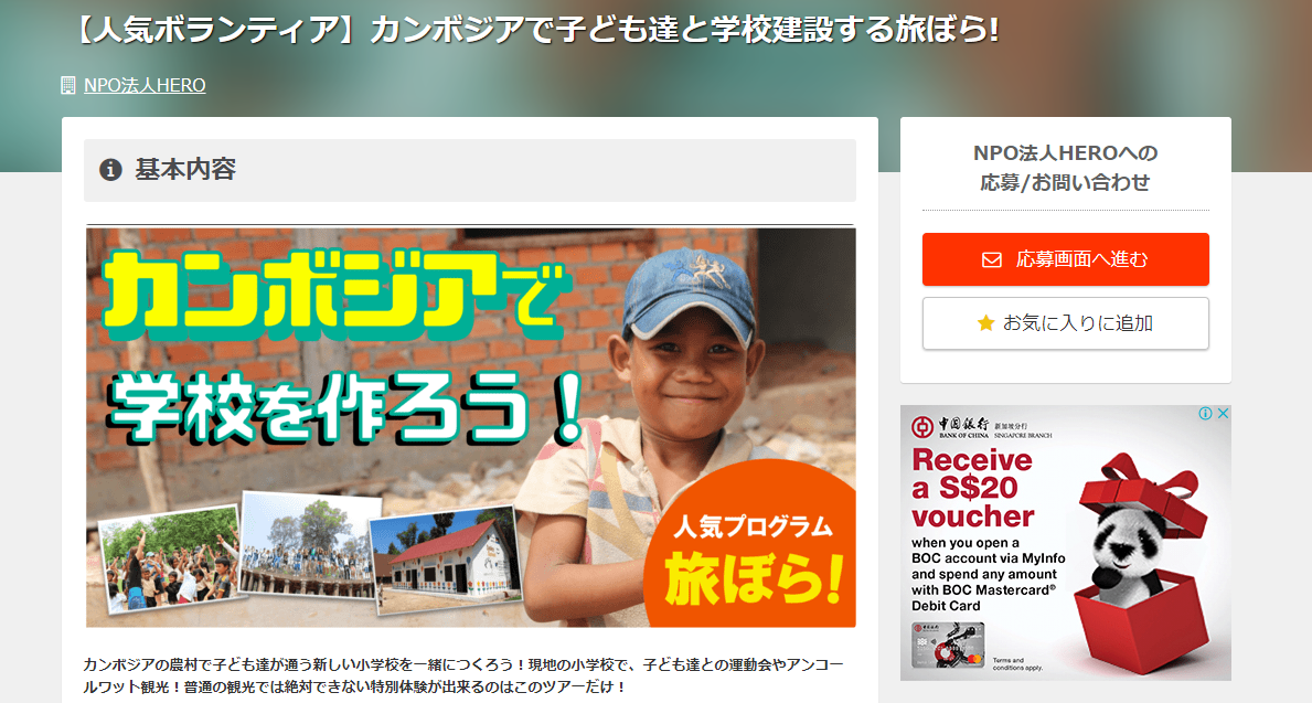 「カンボジアで子ども達と学校建設する旅ぼら!」は、カンボジアの教育格差をなくすため、カンボジアで学校を建設するボランティアです。